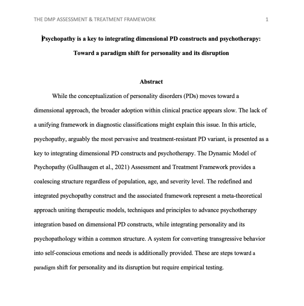 Psychopathy is a key to integr. dimensional PD categories and psychotherapy: Toward a paradigm shift for personality and its disruption